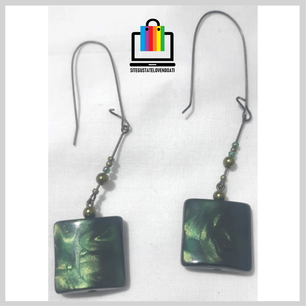 ✅ Aros Colgantes Cuadrados Verdes.