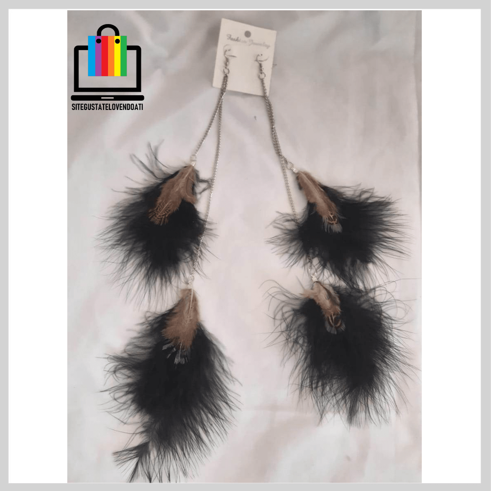 ✅ Aros Colgantes de Plumas Negro Café.