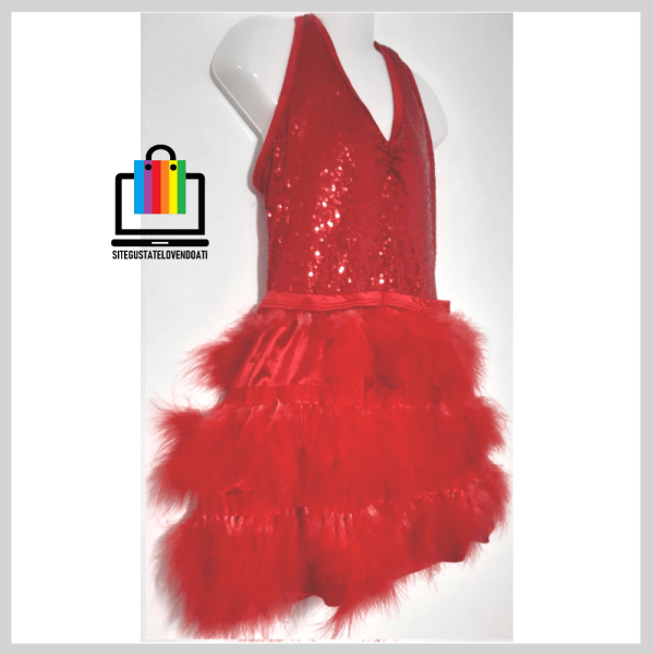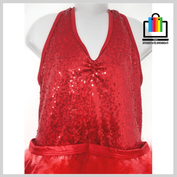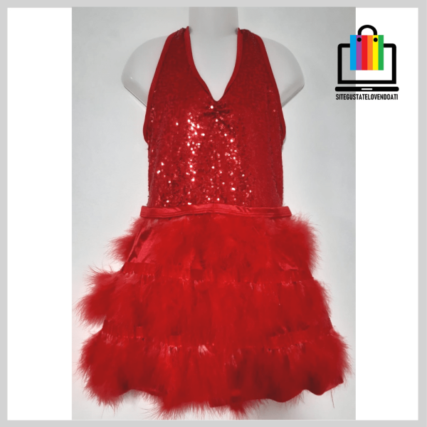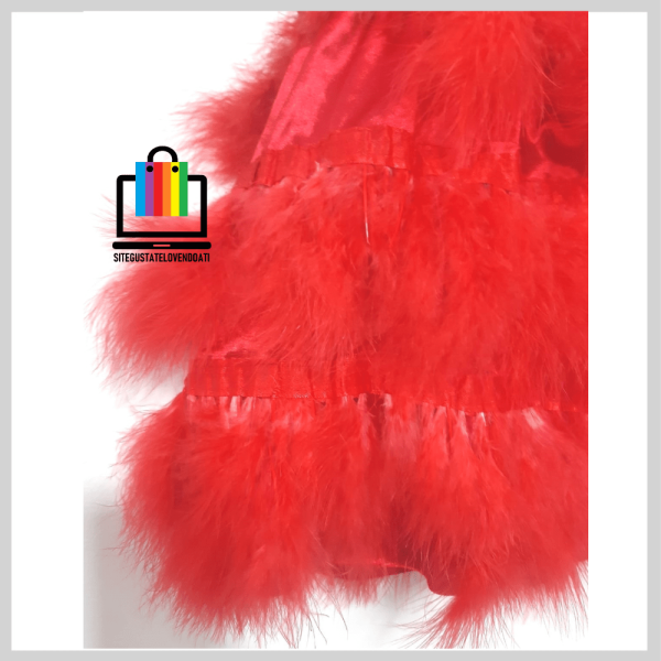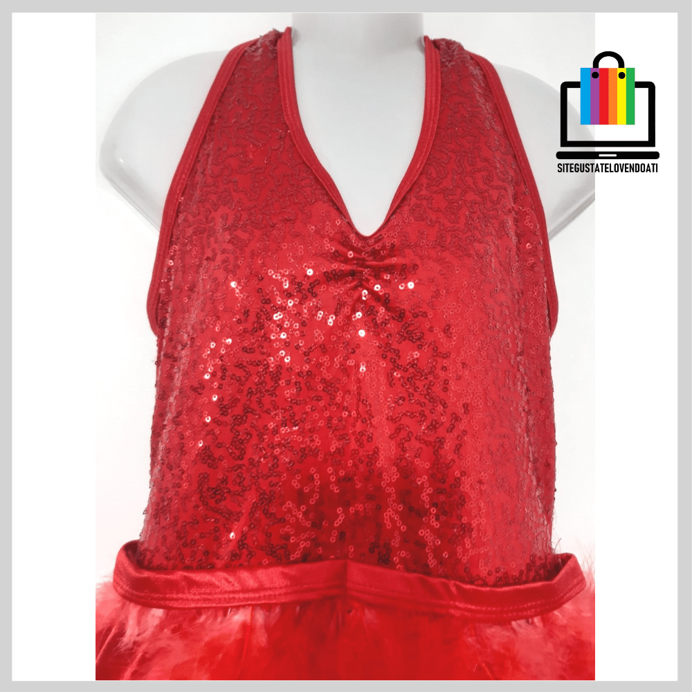 ✅Disfraz de Bailarina Rojo Plumas o Artista de Circo. ✅Disponible en talla: 12-14-16-S-M. ✅En la parte superior posee lentejuelas. ✅Parte inferior decorada con plumas de color rojo. ✅En la parte trasera del cuello, posee broches. |