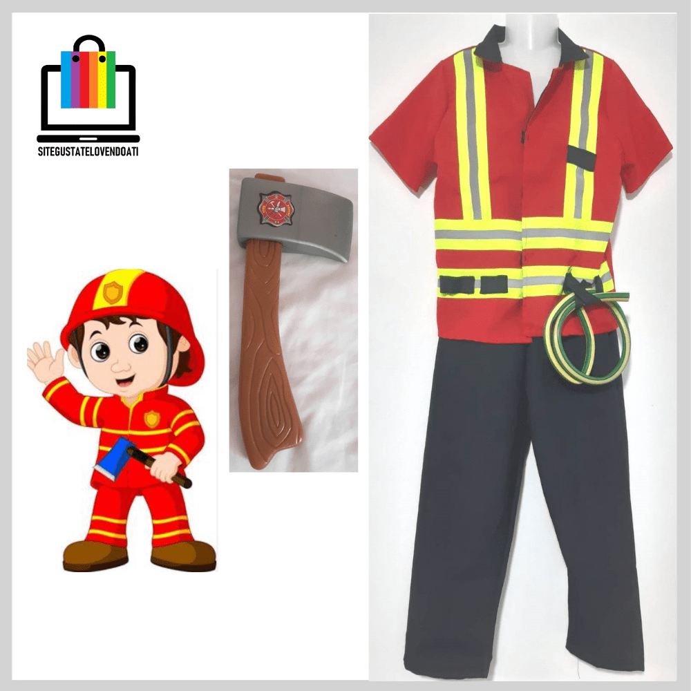 | ✅Disfraz de Bombero con Manguera y Hacha. ✅Traje de Chaqueta y pantalón, con accesorio de manguera que se cuelga de la chaqueta. ✅Disponible en talla: 8-10-12. ✅El disfraz incluye una hacha de plástico. ✅Pantalón de cintura elasticada, lo que hace más cómodo su uso. |