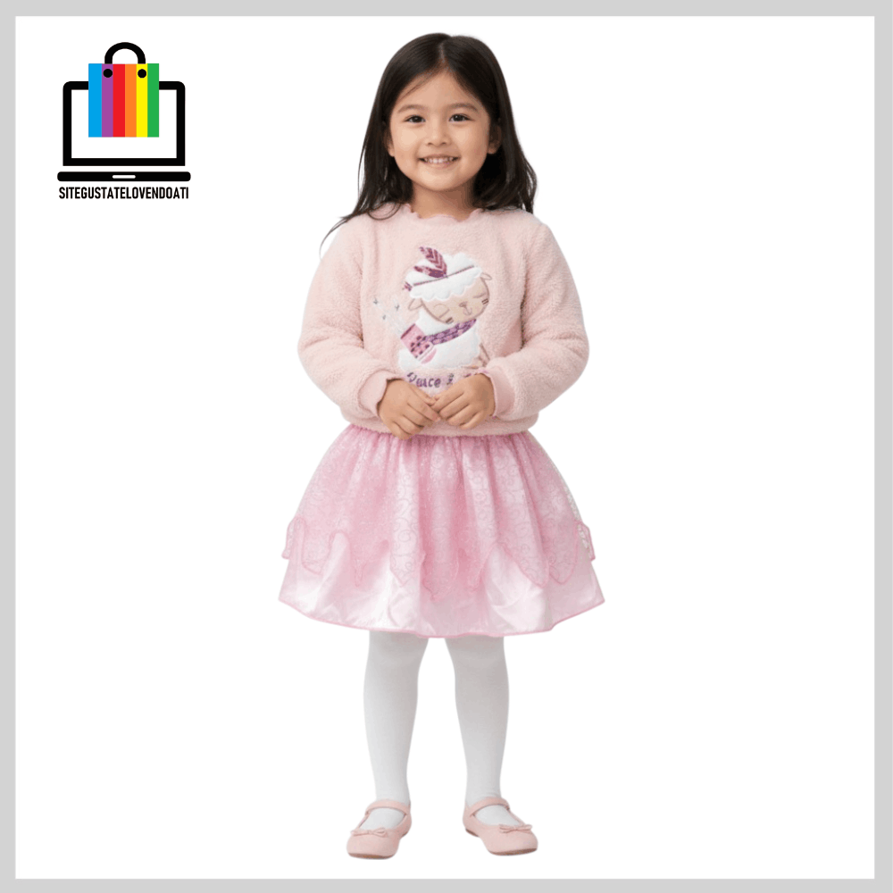 ✅Falta de tul con diseño, forro rosado brillante y cintura elasticada.
