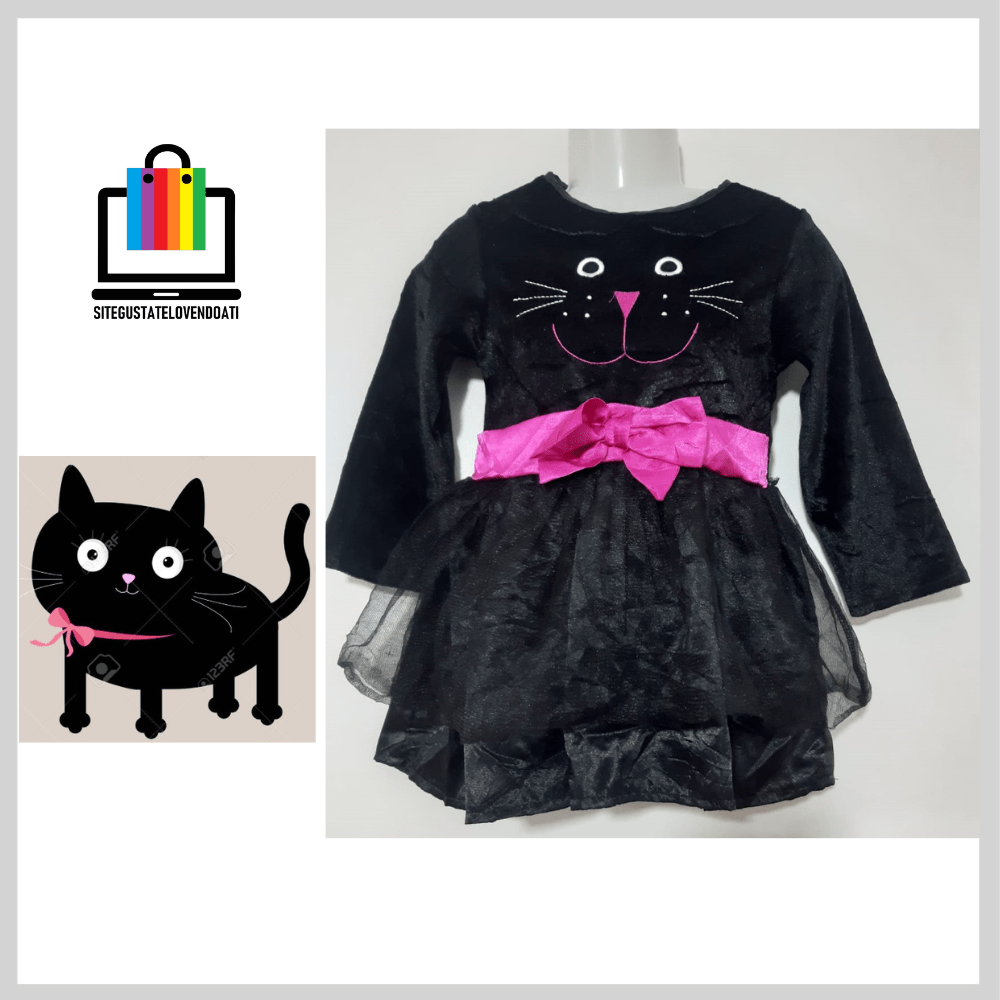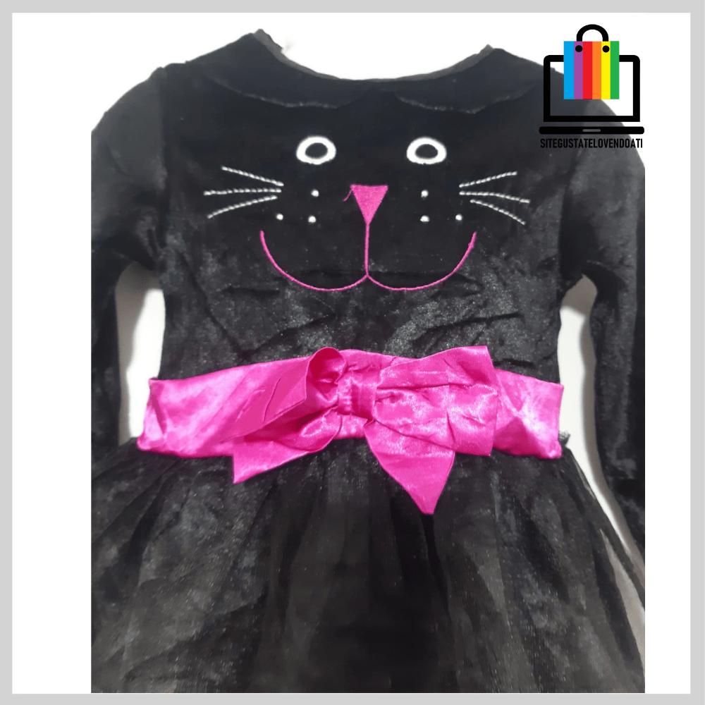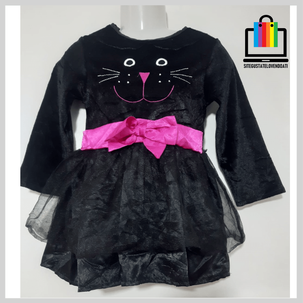 | ✅Disfraz Gatita Negra con Cinta. ✅Disponible en talla: 2-3-4. ✅Elegante vestido, fabricado en tela aterciopelada y tul. Con cinta de color fucsia que rodea la cintura. |