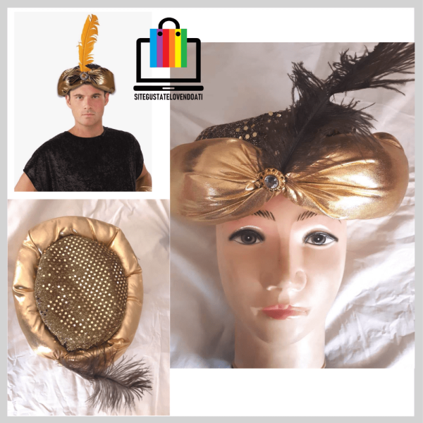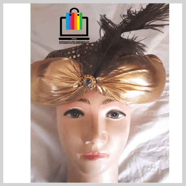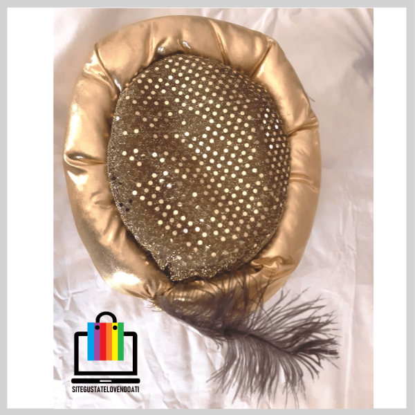✅ Hermoso gorro con forro, fabricado de suave tela dorada y pluma.